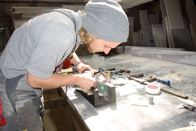 Den Block vom Steinmetz in die gewünschte Form zu bringen beanspruchte vier Stunden;