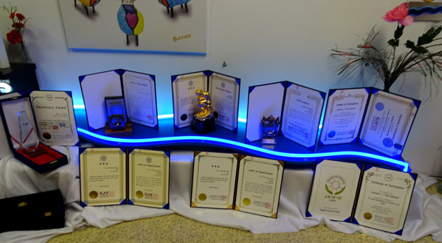 dekoriere meine Preise und Urkunden in einem meiner Ausstellungsräume. Klar,
