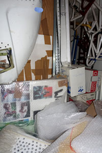 unterschiedlichsten Arbeits- und Verpackungsmaterialien sowie Original-Flugzeugteile