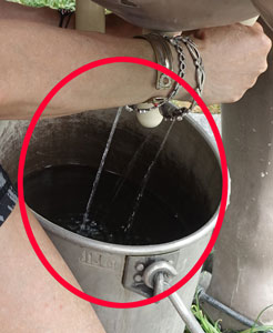 Aus dem Euter eine Plastik-Kuh kommt Wasser, wenn man sie melkt - den Spaß
