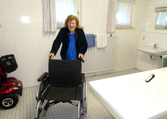 sondern hat nun einen nagelneuen Rollstuhl, der zu schade ist, in einer Ecke