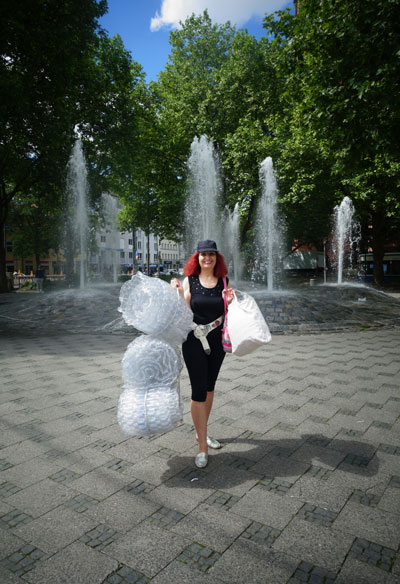 Die lieben MitarbeiterInnen der Städtischen Bestattung München, mit denen ich seit 100 gefühlten Jahren bestens zusammenarbeite, legen mir gerne Verpackungsmaterial beiseite. Heute hole ich einen Teil ab und trage es zu Fuß in meine Ausstellungsräume in der Nähe vom Sendlinger-Tor-Platz im Herzen Münchens. Das spart mir nicht nur Euros, sondern dem Bestatter die Entsorgung und allgemein Ressourcen.