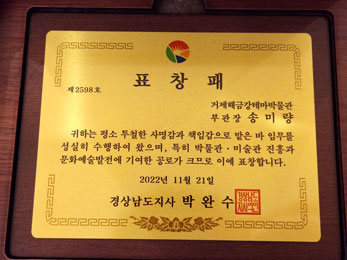 Quote beginning: "This November 21st, the "Gyeongnam Museums Competition" was recognized for