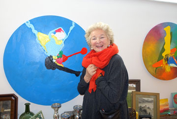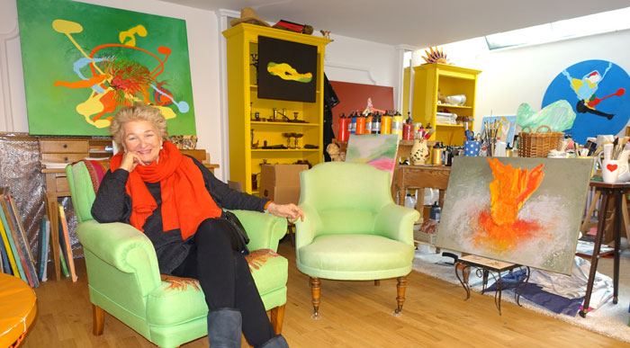 lädt mich zu Kaffee und selbstgebackenem Apfelkuchen in ihr Atelier ein: Sie