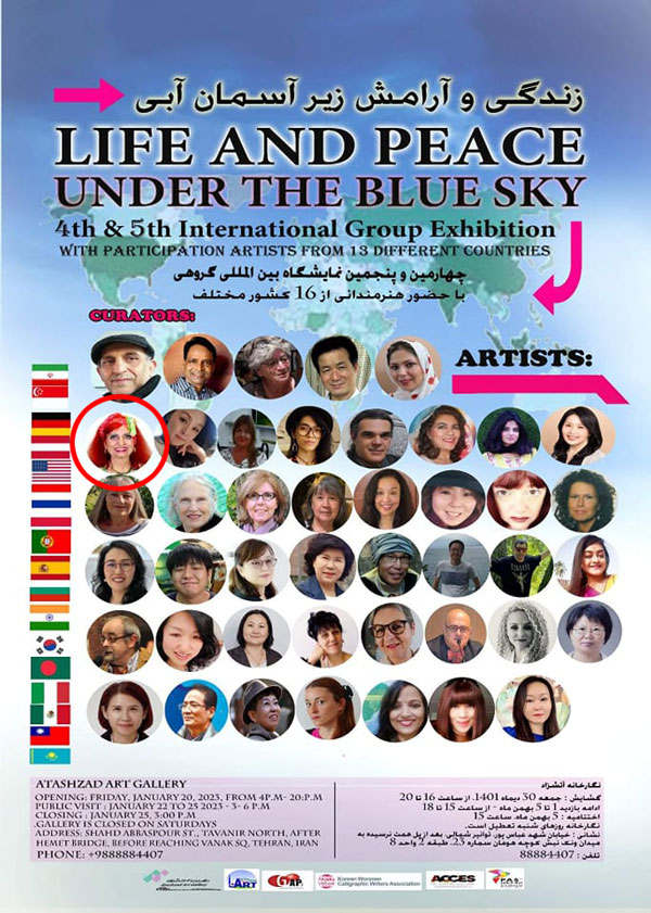 Die Ausstellung findet in der Atashzad Galerie in Teheran vom 20. - 25. Januar statt, wo ich bereits Kunstwerke präsentierte. Die teilnehmenden Künstler unterstützen damit den Friedensgedanken. Wir schicken Fotos von unseren Kunstwerken an die Galerie, die sie auf Leinwand druckt und dann ausstellt.