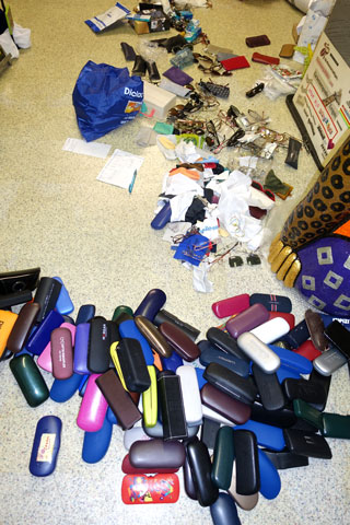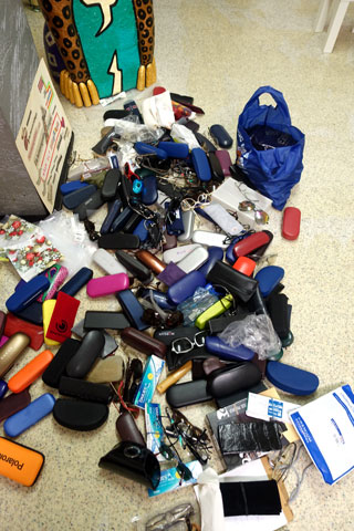 I piled up the donated treasures (in favor of GLASSES WORLDWIDE), but