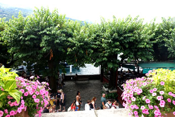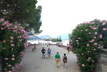 Die Isola Bella gehört zu den Borromäischen Inseln. Der prunkvolle Palazzo Borromeo ist mit seinem botanischen Garten eine der Hauptattraktionen des Lago Maggore. Hier ist der Weg von der Fähre zum Palazzo Borromeo zu sehen.