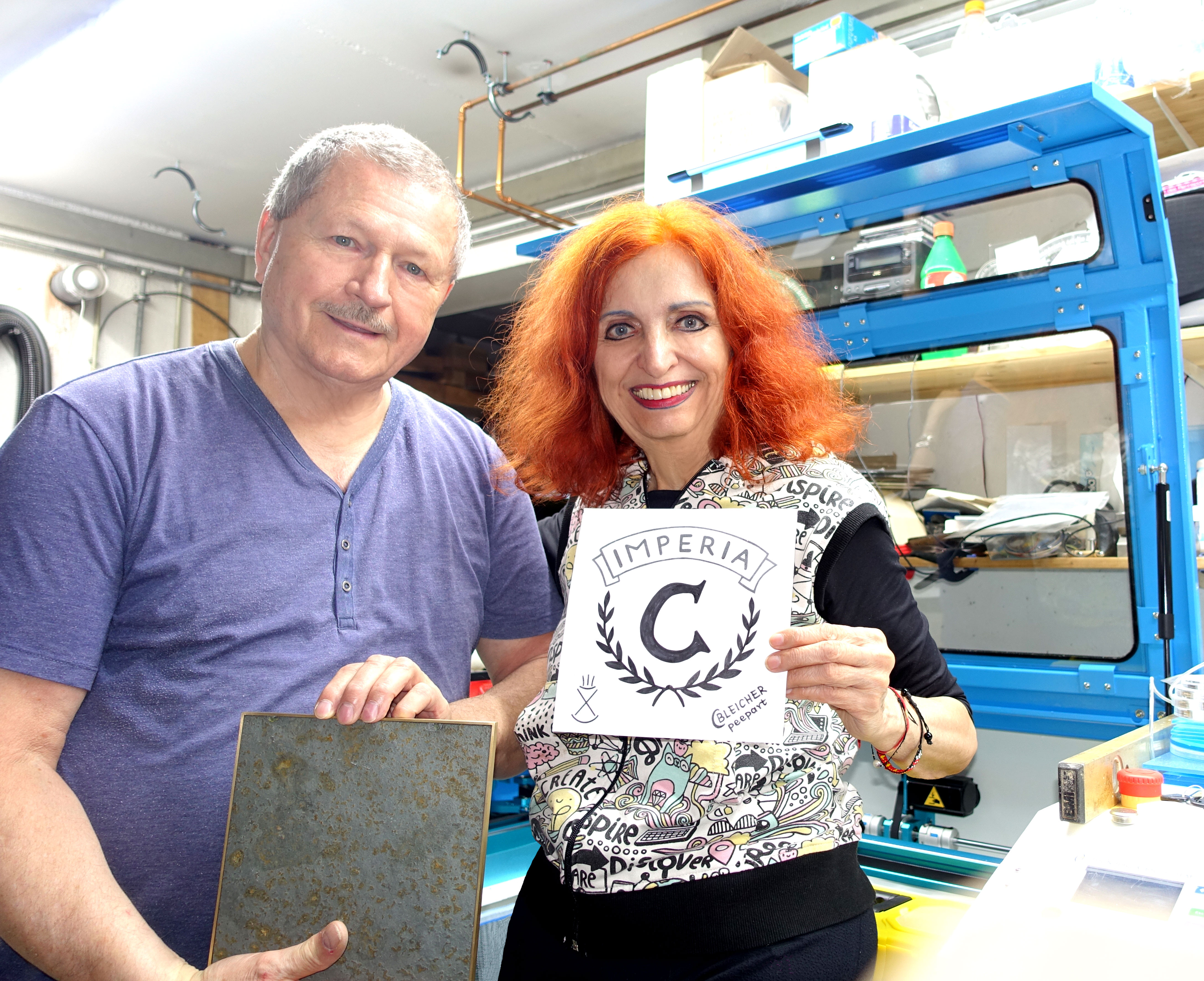 28.6. Mit gerahmter Schieferplatte beim lieben Rudi Perzl