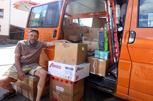 neben vielen Brillenkartons unterbrachte. Wie immer ist die Wiedersehensfreude gross!