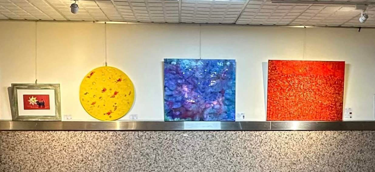 Schön zu sehen, dass ich mit der lieben Künstlerkollegin Gloria Fu Keh (ihre beiden Kunstwerke sind rechts,