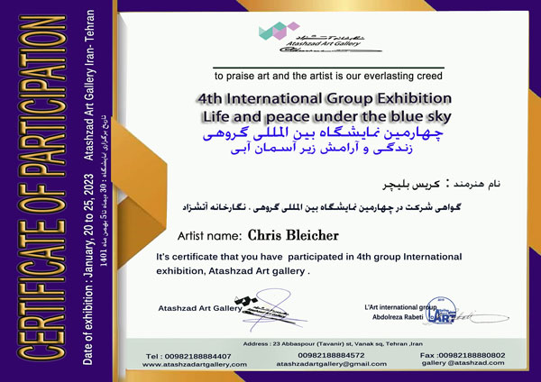 Zertifikat für Ausstellung "Leben und Frieden unter dem blauen Himmel", Iran English translation below / Magyar fordítás alább |