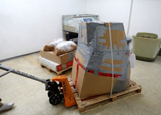 Nach dem Korpus kommen der Kopf, Schwanz und Pfoten in den Lastenaufzug.