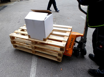 ![]() Die Palette wird mit Kissen gepolstert The pallet is padded with cushions A raklap párnákkal párnázott |