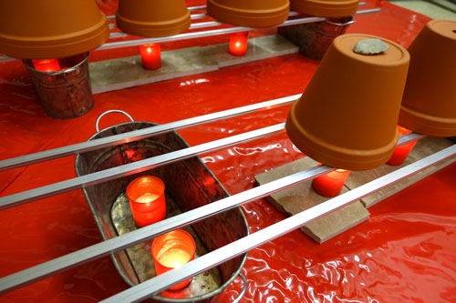 Elektroheizungen verzichten konnte. Die Wärme wird durch die Anzahl der Teelichter geregelt,