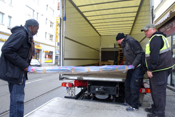 Um 9 h geht es los, die lieben Männer meiner Transportfirma alpha trans und