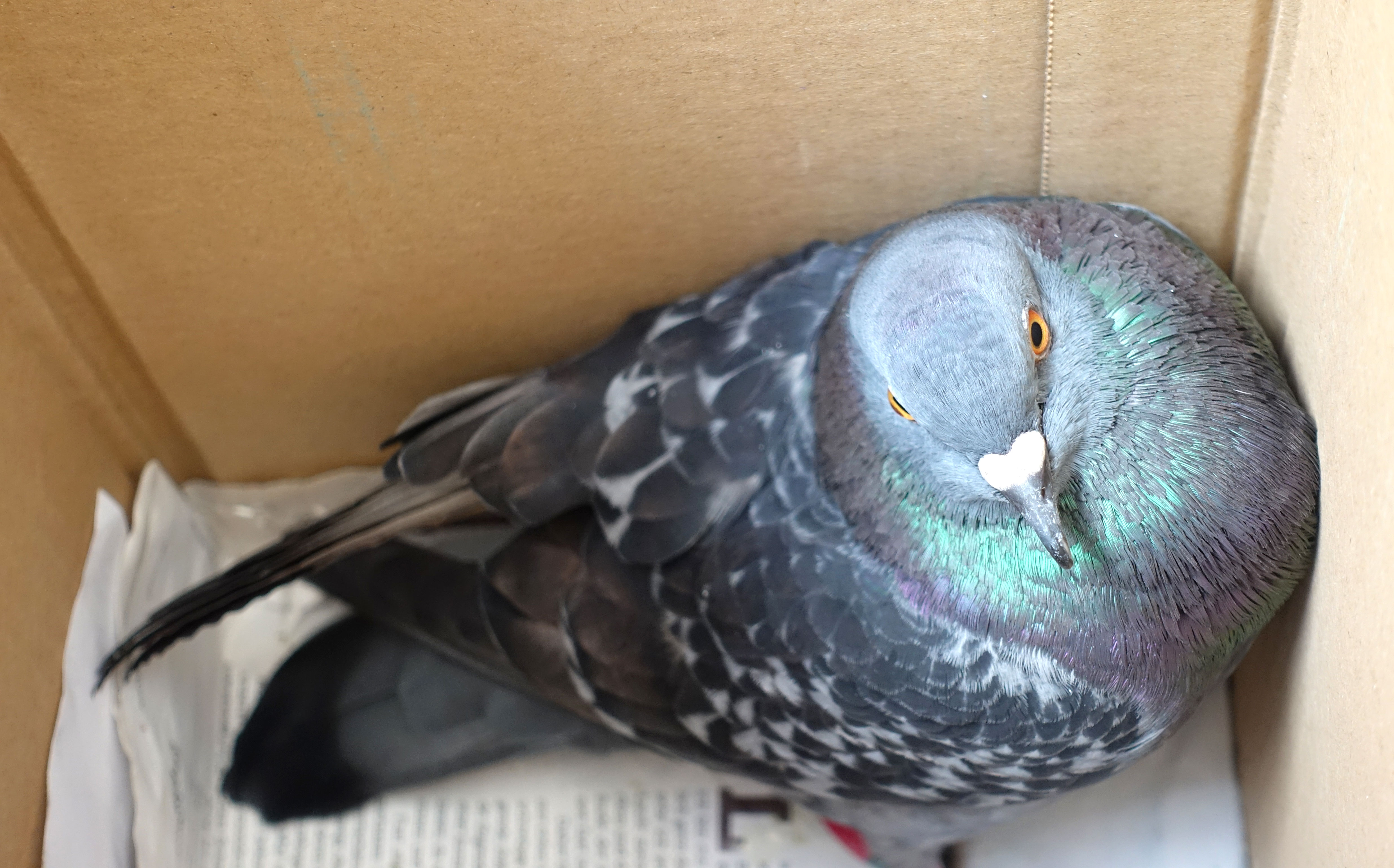 a név nem mondja ki! Az állatmenhely barátságos munkatársa megvizsgálja a galambot: