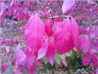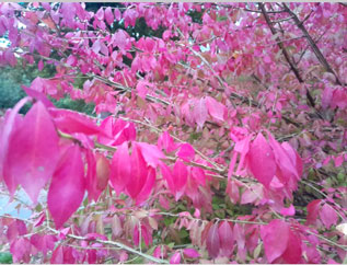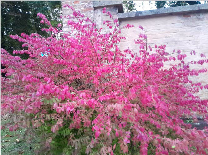 Auf dem Weg nach Hause fällt mir dieser herbstlich leuchtende Busch neben der Mauer des