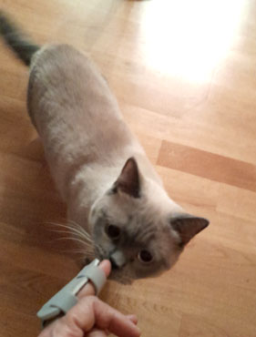 Zwei starke Schränke (pardon: Männer) schleppen, demontieren in der alten und montieren in der neuen Wohnung 11 1/2 Std. meine Möbel und anderes. Ich bat dabei 3 x darum, ein Acrylschränkchen im Bad an die Wand zu hängen, ohne Erfolg. Es wird weiter der Transporter ausgeladen. Im Tohuwabohu übersah ich dann das am Boden liegende Acrylteil und stürzte darüber. Der Finger steht schief und das Schienbein hat ein Loch! Doch ich habe Glück im Unglück: In der Notaufnahme der Rinecker-Klinik am Isarkanal komme ich ohne Wartezeit dran und habe freundliche Ärzte. Der Finger muss eingerenkt werden, der Knochen ist nur minimal angesplittert. Auf eine Schmerz- und eine Tetanusspritze verzichte ich. Dann geht es weiter mit dem Umzug. Abends versorge ich die süße Mieze Lou von einer lieben Bekannten, die interessiert an der Fingerschiene schnuppert.