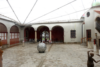 ![]() Gudrun Kohout, Ingrid Oxford, Cordula Dobes, Chris Bleicher (von li.) mit Bronce-Stier von Cordula Dobes (from left) with bronze bull by Cordula Dobes (balról) Cordula Dobes bronzbikájával