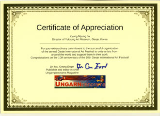 für die Museumsdirektoren Cheon Eob YU und Kyung Myung JA für ihre herausragende Leistung, Künstler