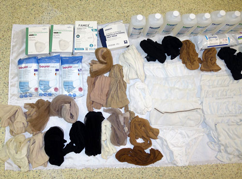 bottles of 500 ml disinfectant, FFP2 masks and other, there was a