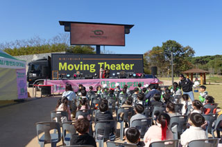 Free English translation On the way to the Donghak Memorial Hall in Jeongeup, our group passes a Moving Theater for children.