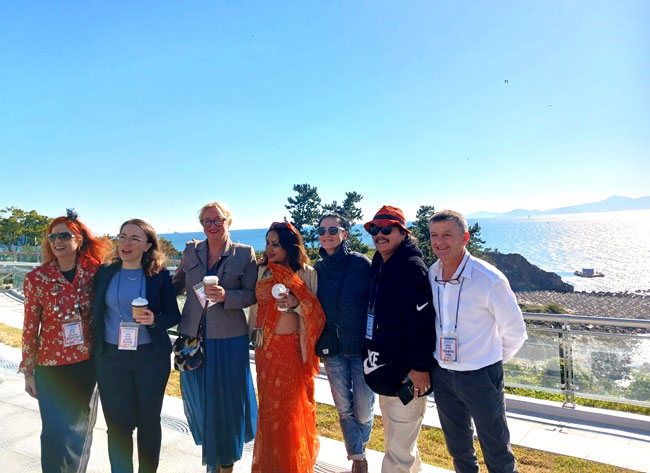Wanderwegen mit Aussichtspunkten über den Hafen von Busan.