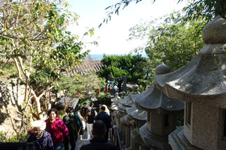 Free English translation Steep stairs lead to the temple by the sea.