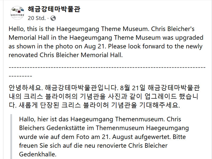 (2) Aufwertung meines Bleicher Memorials in Südkorea |