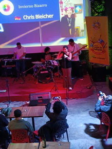 Bleicher-Art auf Screen bei "Bizarrer-Winter"-Festival in Peru |