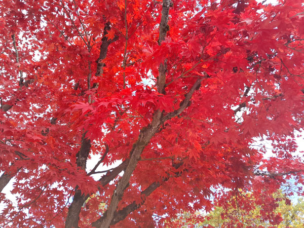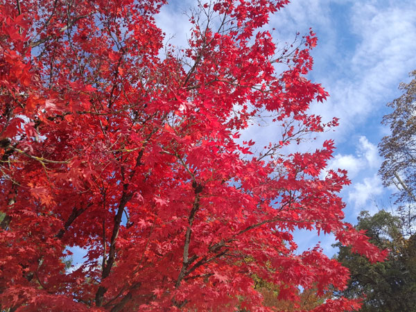 gehe, strahlt sein rotes Ahornlaub im Herbstlicht - die Natur zeigt, wie schön sie sein kann.