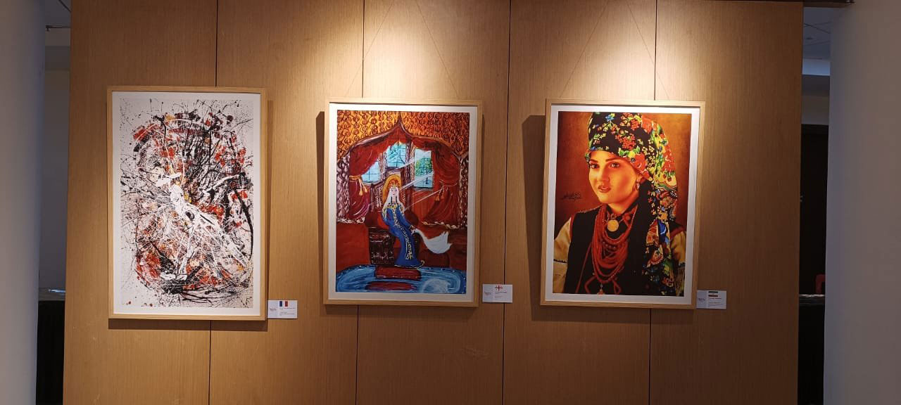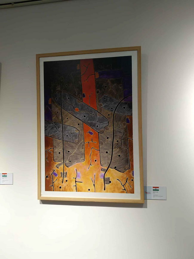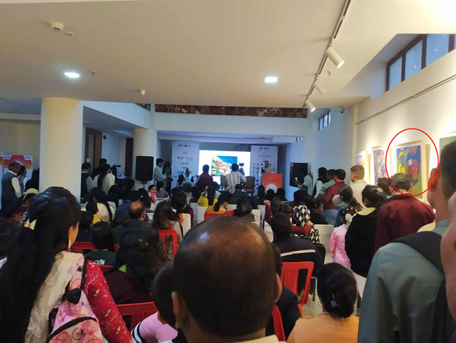 (2) Ausstellungsfotos von meinem Tahiti-Orange-Kunstwerk in Indien |