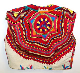 ![]() Zum Bolero gibt es einen ebenso handgestickten Rock, den ich ebenso nach Südkorea schicke. Eine ähnliche Arbeit über Indio-Kunst sah ich in einem Museum während einer Reise. |