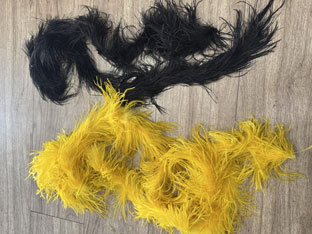 ![]() Schwarze + gelbe Straussenfederboas, angekommen beim Museum Black + yellow ostrich feather boas, arrived at the museum