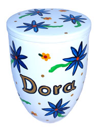 3 Tierurnenbestellungen liefere ich heute dem Münchner Tierkrematorium: Garten im Jenseits mit Beschriftung "Dora"