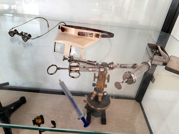 Ende fand. Eine staubige Vitrine mit Augen-Gerätschaften, die wie Folterwerkzeuge
