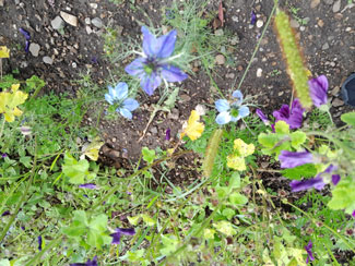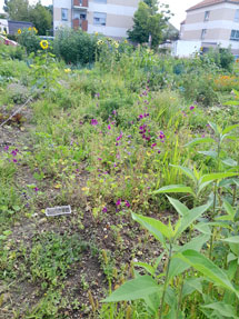 Zwischen den Beeten liess ich Unkraut f¨r Bienchen stehen. Das sieht zwar nicht