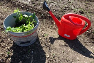 Einige Jungpflanzen buddle ich in meinem Krautacker ein, den Rest nehme ich mit nach Hause.