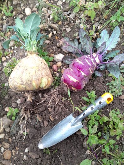 roten und einen weissen Kohlrabi aus, die ich extra für's überwintern