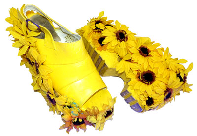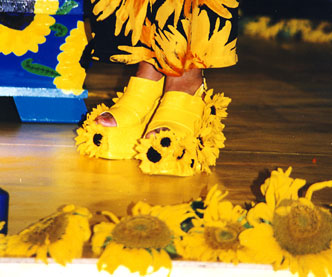 ![]() Schuhe meiner Ausstellung mit Sonnenblumen-Happening und Sargperformance Shoes of my exhibition with sunflower happening and coffin performance |