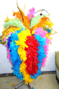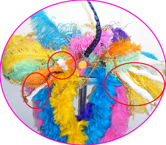 in den Straussenfedern verhaken I wrap the gold decorations in tissue paper so they don't get tangled in the ostrich feathers. |