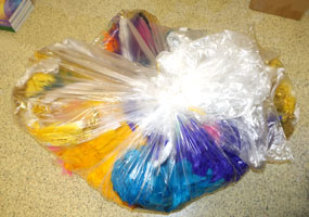 ![]() Das Museumsglas meines Handabdruck-Bildes schütze ich mit Karton bevor ich den Pfauenfeder-Hut auflege. I protect the museum glass of my handprint picture with cardboard before I put on top the peacock feather hat. |