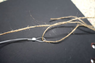 ![]() Einfädeln der Schnur in Flugzeugteil Threading the cord into the aircraft part |
