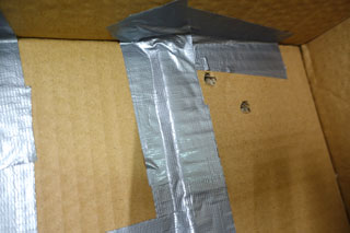 am Kartonboden. Zum Glück hat es viele geeignete Löcher für die