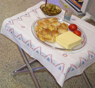 einer Flasche Champagner und feinen Bio-Häppchen.