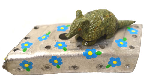 ![]() Flugzeugteil mit Gürteltier / Airplane Piece With Armadillo Mischtechnik: Original Flugzeugteil mit Stein-Gürteltier aus Brasilien Mixed Media: Original airplane piece with stone armadillo from Brazil |