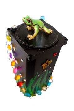 ![]() Flugzeugteil mit grünem Frosch Airplane Piece With Green Frog Mischtechnik: Original Flugzeugteil, 3D-Kunststoff-Frosch, Acrylmalerei, Collage Mixed Media: Original airplane piece, 3D-artificial frog, acrylic painting, collages |