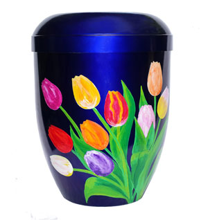 Auftragsarbeit: Bunte Tulpen mit Blattgrün-Urne Commissioned Work: Colorful Tulips With Leaf Green Urn English translation below