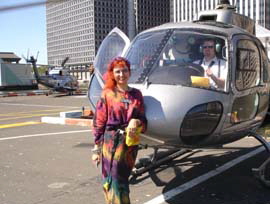 2006-09-21 Chris Bleicher's Hubschrauber-Ausflug / Chris Bleicher's helicopter tour Aufstehen um 6.30 Uhr. Anstatt das MoMA (Museum of Modern Art) zu besuchen, Fahrt zu 9/11 (World Trade Center). Finde direkt davor einen Parkplatz! Diesen Platz zu sehen, beeindruckt mich sehr. Es sind viele Touristen hier. Um mich zu zerstreuen, fahre ich zum Pier. Eine Dame im gelben Jackett bietet mir einen Hubschrauber-Rundflug an. Es ist ein Traumwetter. Ich zögere nicht lange und kaufe das Ticket. Ich bin schon immer gern geflogen, insbesondere mit kleineren Flugzeugen. Aber das Gefühl eines Hubschrauberflug schlägt alles! Bei der Freiheitsstatue drehen wir um. Dann Fahrt von Downtown Manhattan nach Port Chester zu Maria's Haus. Matthew mailt einen Teil der Fotos der letzten Tage an www.isarbote.de.