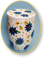 created Mrs. Lang from Ingolstadt for this pet urn with flower motif. This model she choose, too as price of the urn